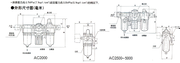 *供應(yīng)壓力為0.7MPa(7.1kgf/cm2)設(shè)定壓力為(5.1kgf/cm2)的情況下。